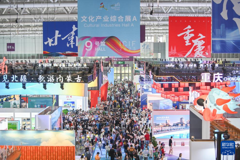 5月24日,观众离开文博会展馆。新华社记者 肖恩楠 摄